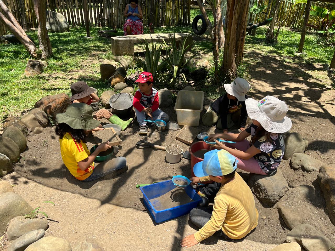Bajo la sombra de dos grandes Samanes y rodeados de frutales de guayaba, guanábana, limón, mandarino, pomarrosa, anón, aguacate, cacao, carambolo, papayo, maracuyá y huertas de verduras y plantas aromáticas, se encuentran los espacios verdes donde juegan los niños y disfrutan de columpios colgantes, arenero, brinca-brinca, pasamanos, rodadero y barras de equilibrio. Contamos con acogedores salones de construcción ecológica y mobiliario de madera. Damos un énfasis especial a la naturaleza, como un otro que merece respeto, consideración y cuidado. Nos acercamos a ella desde la agricultura, las caminatas, el arte, la siembra de árboles en parques aledaños y actividades al aire libre que permiten desarrollar conexión emocional y espiritual con el ecosistema que nos rodea. En las salidas pedagógicas, los niños afianzan sus conocimientos desde la experiencia práctica con la naturaleza, la geografía y los distintos oficios.